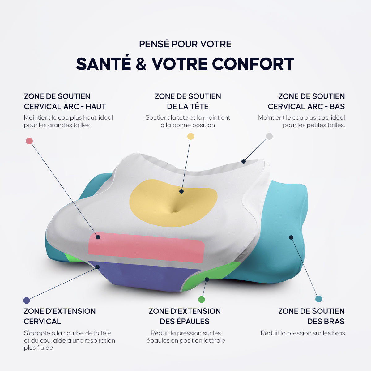 Respirant, hypoallergénique et pensé avec des experts, il aligne vos cervicales, soulage vos tensions et vous offre un confort sur-mesure.